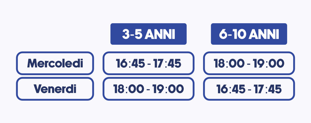 • Piccoli esploratori (3-5 anni): giochi sensoriali, canzoni e attività creative per i nostri piccoli protagonisti